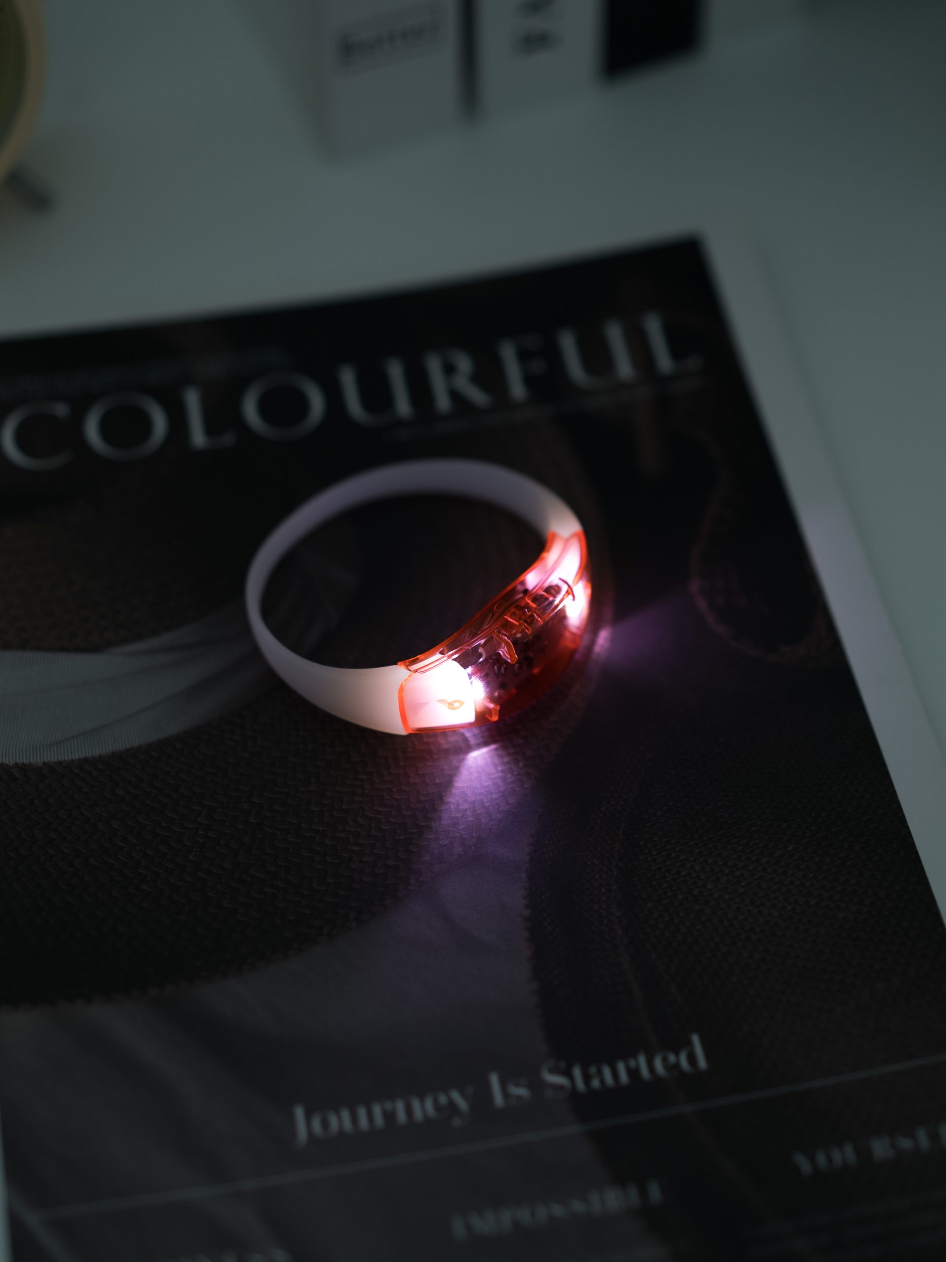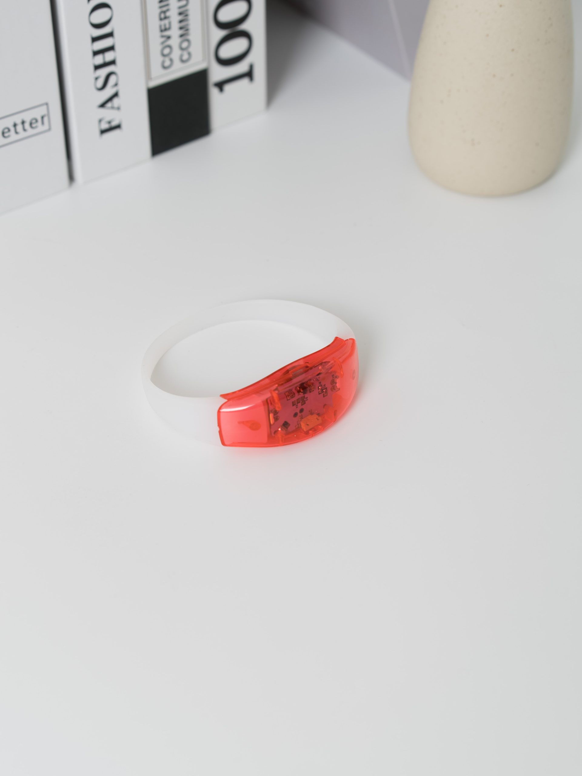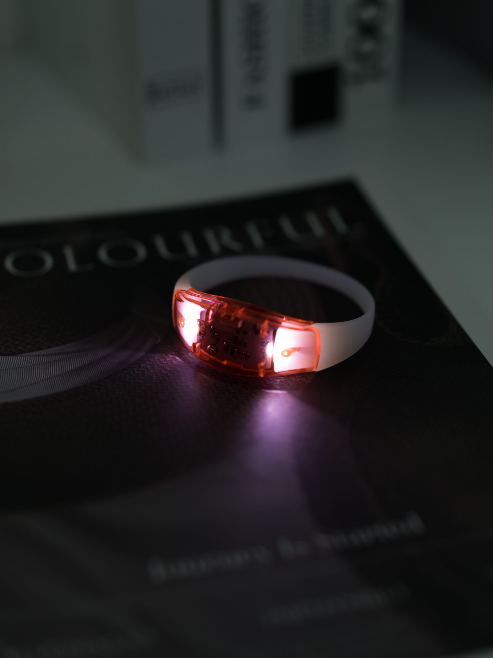 Pulsera LED de silicona diseñada para corredores y actividades nocturnas. Ofrece visibilidad y seguridad en la oscuridad con tres modos de iluminación (flash rápido, flash lento y luz continua).